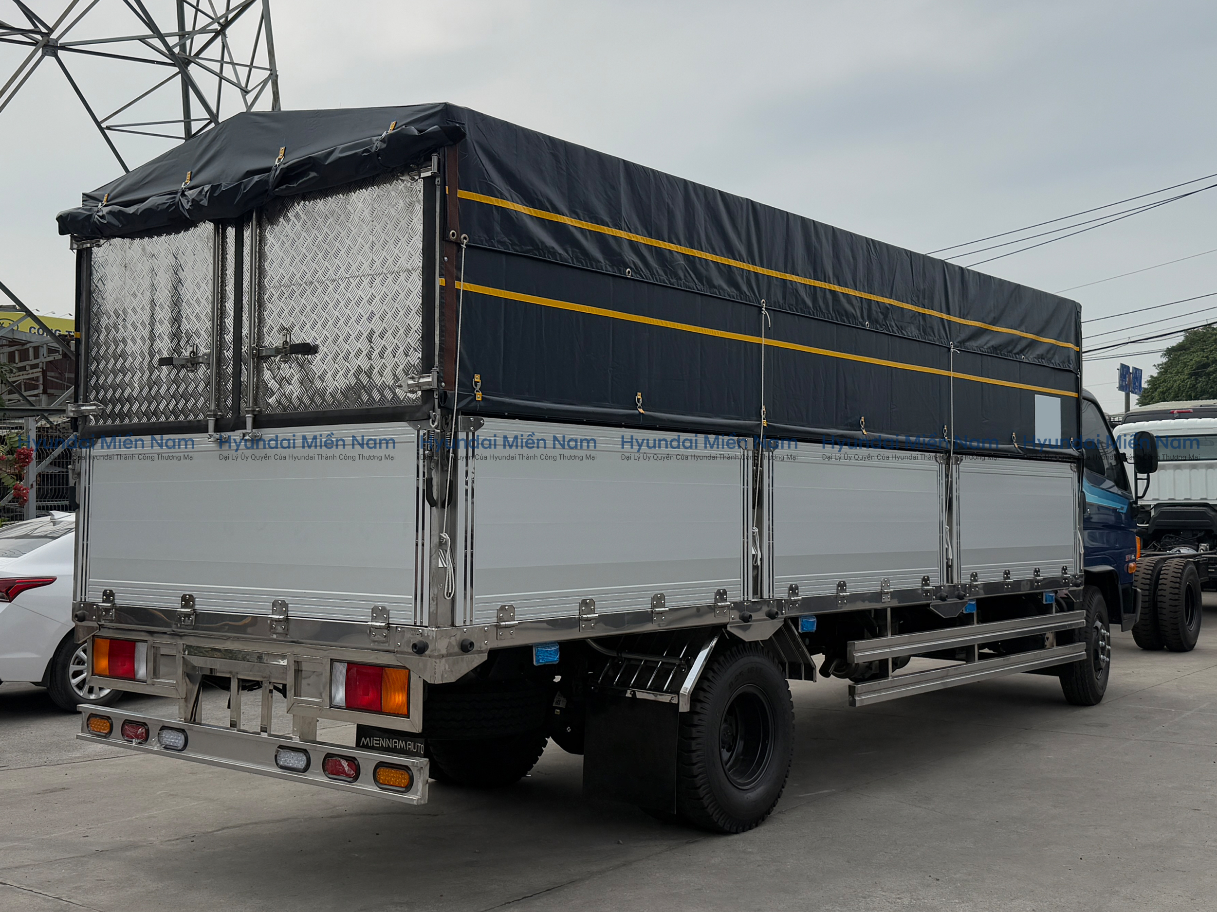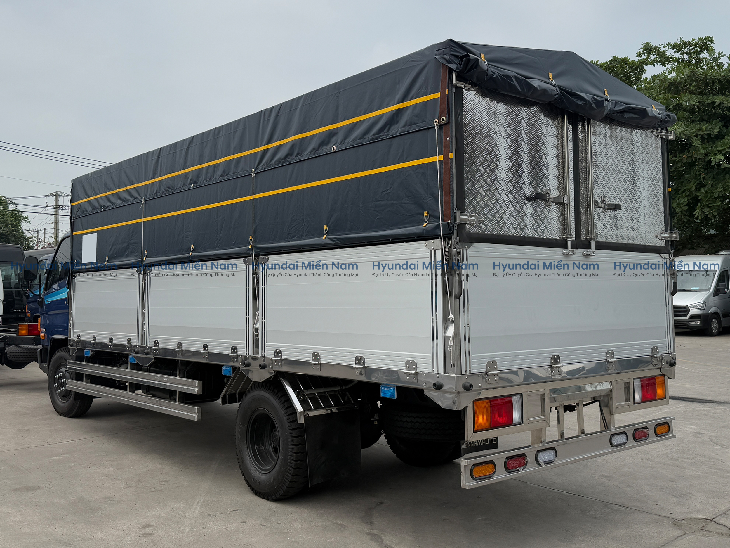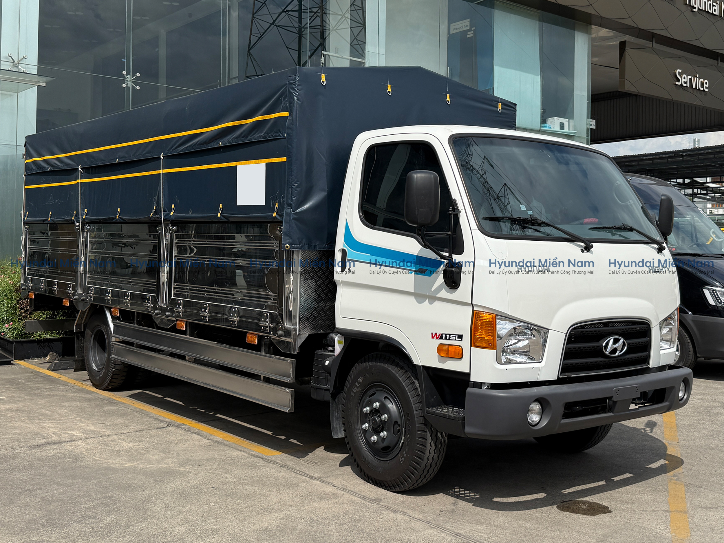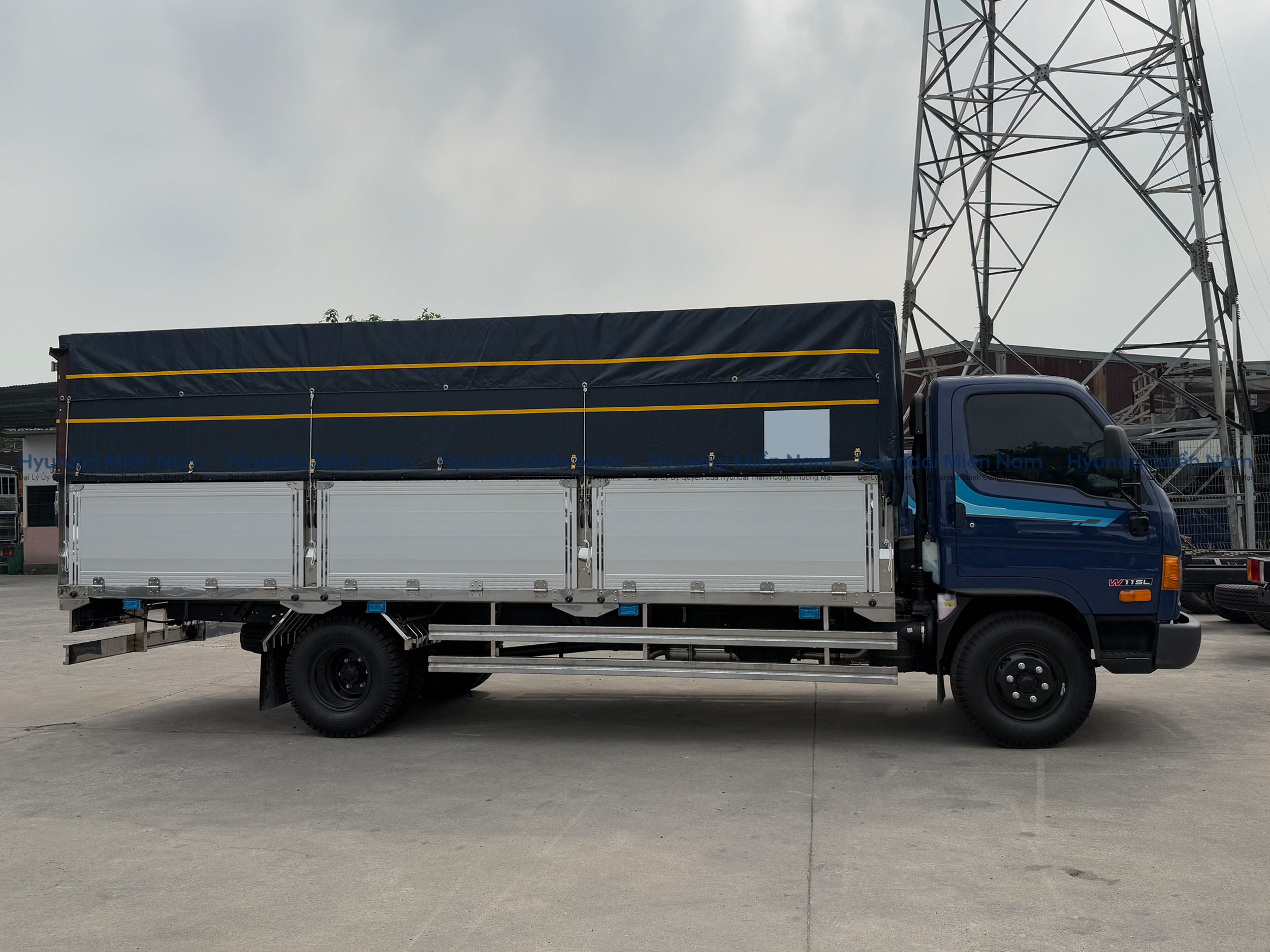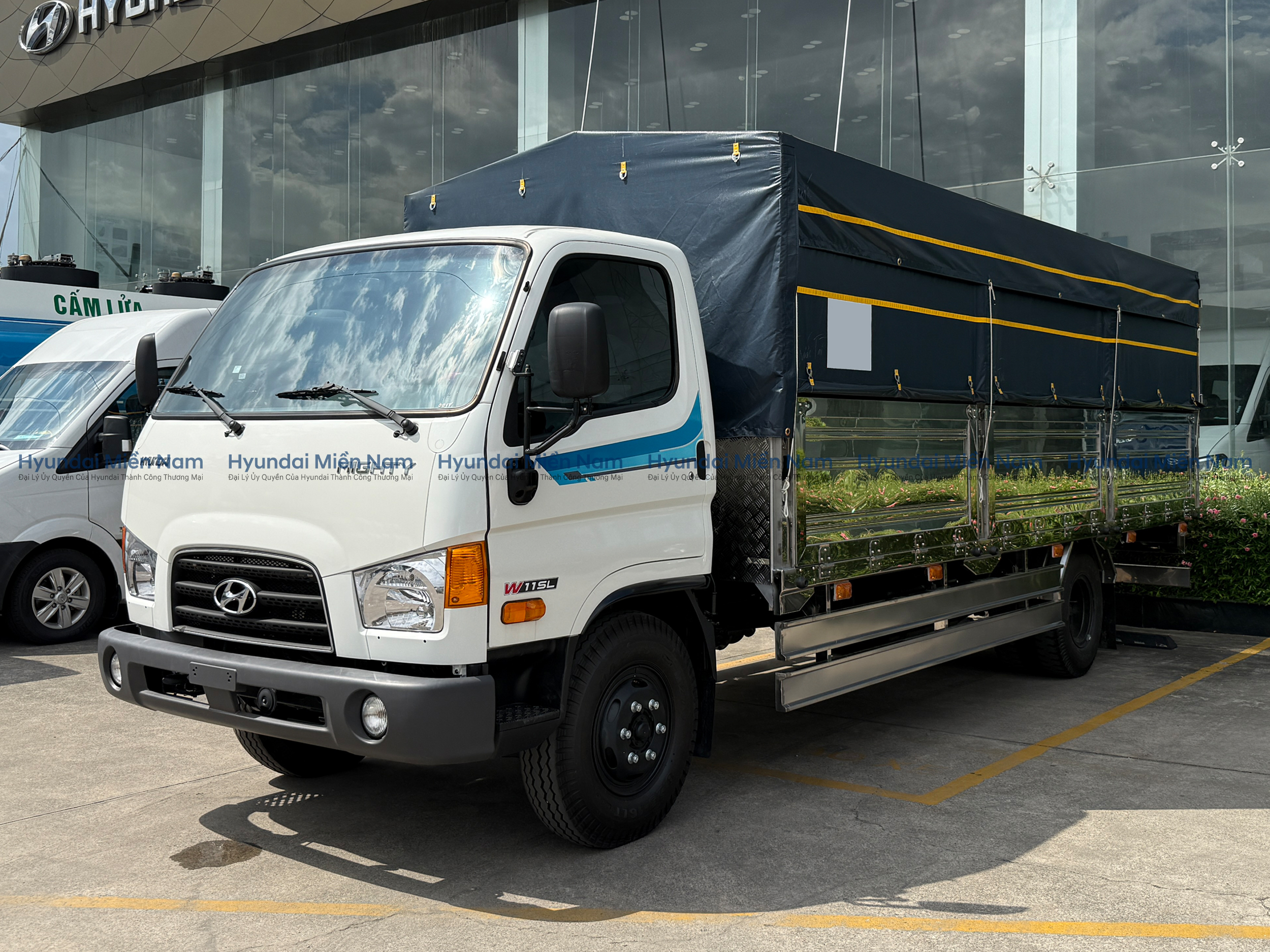 Hyundai Mighty 110SL thùng mui bạt là sự kết hợp giữa thùng kín và thùng lửng, có thể biến hoá linh hoạt để đáp ứng nhu cầu chuyên chở hàng hoá của khách hàng. Việc sử dụng thùng mui bạt sẽ giúp che phủ, bảo vệ hàng hóa, tránh khỏi các tác động từ bên ngoài, nhằm duy trì chất lượng tốt nhất.