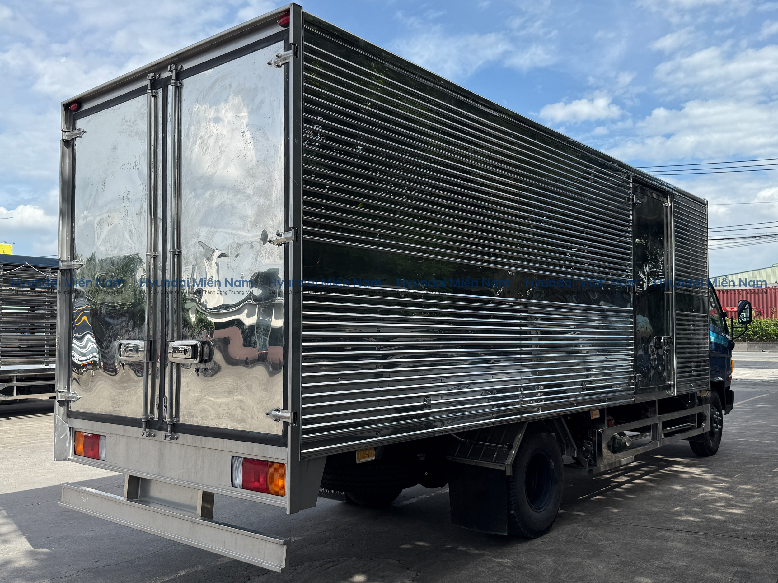 - Sở hữu mức tải 7 tấn kết hợp kiểu thùng kín bằng inox, Xe tải Hyundai New Mighty phiên bản 110XL có thể chuyên chở nhiều mặt hàng khác nhau, bảo vệ hàng hóa khỏi các tác động bên ngoài trong lúc di chuyển.